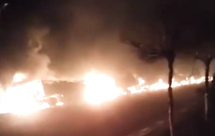 經(jīng)初步調(diào)查,事故中過火大貨車38輛、小型車12輛。現(xiàn)場搜救工作和事故原因調(diào)查仍在緊張進行中。